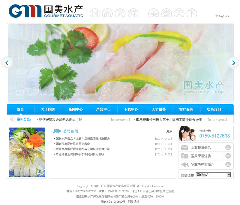 广东国美水产食品有限公司网站项目验收完成并上线运营,网址:http://www.gm-fish.com
