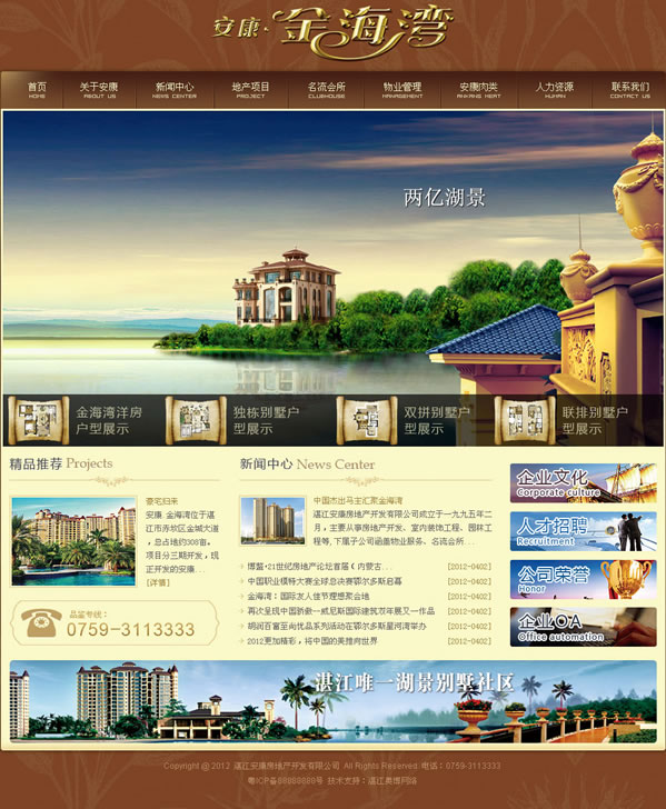 湛江安康房地产开发有限公司成立于一九九五年二月,主要从事房地产开发、室内装饰工程、园林工程等,下属子公司涵盖物业服务、名流会所、商业开发等多个领域。并同时运营湛江安康肉类有限公司,从事现代化肉类生产加工出口业务,公司秉承“缔造品质典范,成就百年安康”的经营理念,致力于打造高端住宅产品。