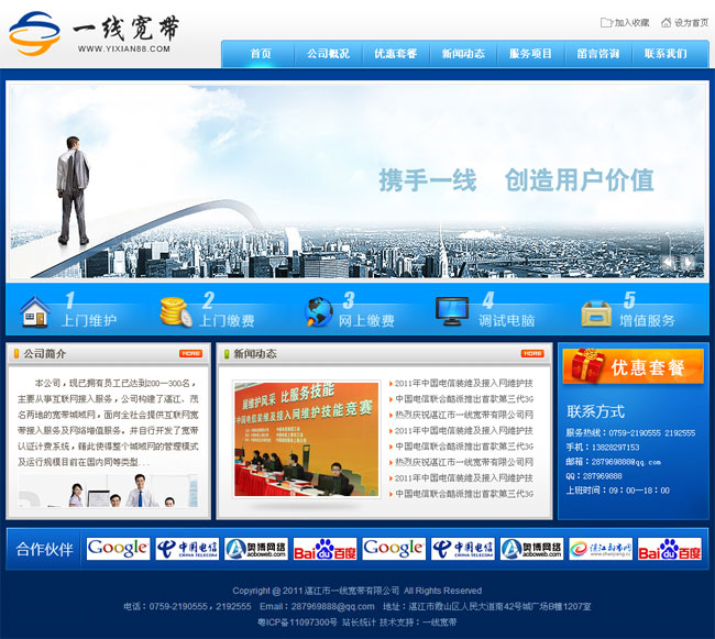 湛江市一线宽带有限公司,现已拥有员工已达到200—300名,主要从事互联网接入服务,公司构建了湛江、茂名两地的宽带城域网,面向全社会提供互联网宽带接入服务及网络增值服务。并自行开发了宽带认证计费系统,籍此使得整个城域网的管理模式及运行规模目前在国内同等类型的的城域网中处于领先水平。
