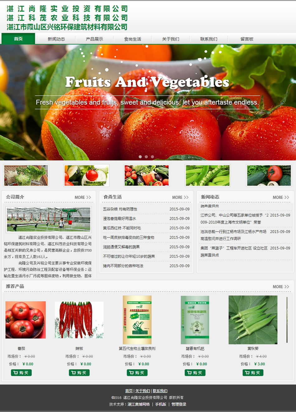 科茂公司主要从事无公害、绿色果蔬的大规模种植,是广东省菜篮子基地。基地常年使用兴铭公司的生物有机肥料种有蔬菜水果,其中的主要品种有:菜心、芥菜、生菜、麦菜、大白菜、小白菜、番薯叶、上海青、通心菜、黄秋葵、玉米、青瓜、淮山、地瓜、水果西红柿、金瓜、冬瓜、茄瓜、辣椒、木瓜等等。