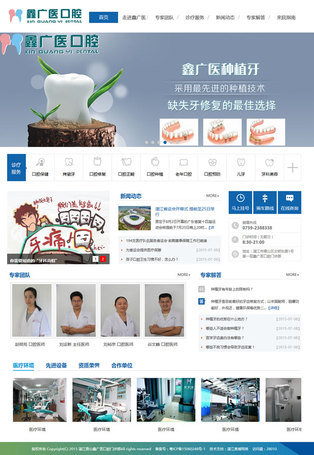 湛江霞山鑫广医口腔门诊部经湛江市霞山区卫生局审核发证,位于湛江市霞山区文明东路广东医学院正门斜对面,是广东医学院(中美)人本医学中心全新理念指导的专业口腔医疗服务单位,聘请德高望重的3.15口腔疑难病专家教授指导诊治。从2009年起是湛江市消委会首家口腔行业诚信单位,湛江市预防医学会、湛江市民营口腔协会、广东省民营口腔协会、广东省保健协会、湛江市口腔正畸协会理事单位,湛江市中小学卫生口腔保健协作单位。