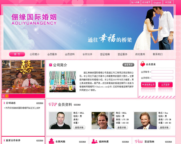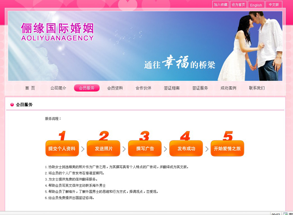 作为香港亚媒网的合作机构,奥俪缘国际婚姻公司为寻找幸福婚姻的中国女士提供了一个平台,让她们通过网络去认识来自欧美发达国家的男士,协助她们寻找到真爱和幸福的婚姻,让“跨国恋”成为现实。公司拥有多名专业英文翻译人员和资深的情感咨询员,为我们的会员提供优质和免费的翻译服务,帮助会员在寻找婚姻时提供心理辅导和情感咨询。