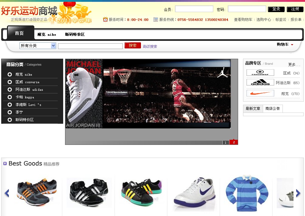 好乐运动网上购物商城,主营品牌鞋子和衣服网上进行直销,实现网上在线支付功能。