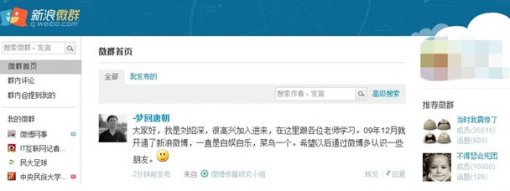6月8日,新浪微博新版微群(http://q.weibo.com/ )正式上线,除在页面布局、功能设置等多方面进行了大量改进外,本次改版的最大亮点在于,新版微群增加了在线聊天和共享文件功能,由此业内人士认为,新浪微博正不断加强网友互动性及强聚合力,微博社交化趋势明显。