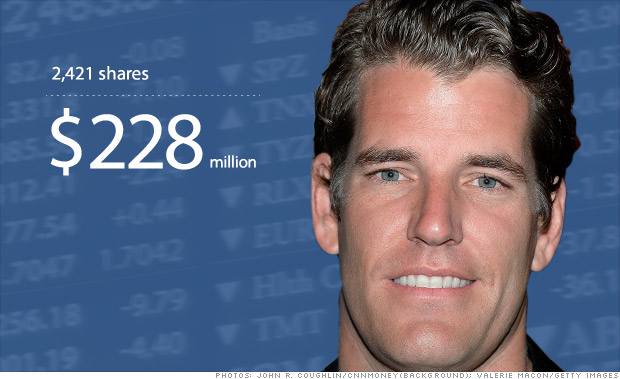 兄弟俩的当时的Facebook股票共有120万股,彼时价值为6500万美元,得益于五合一股份拆分计划,其股份现已增加至600万,也即2.28亿美元。